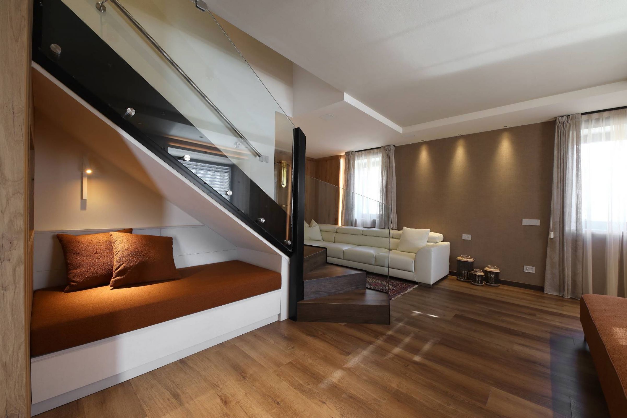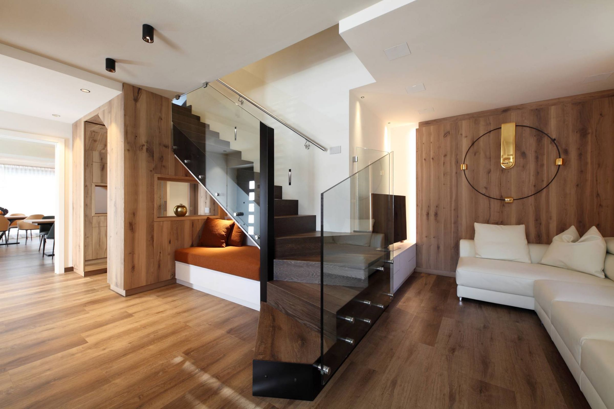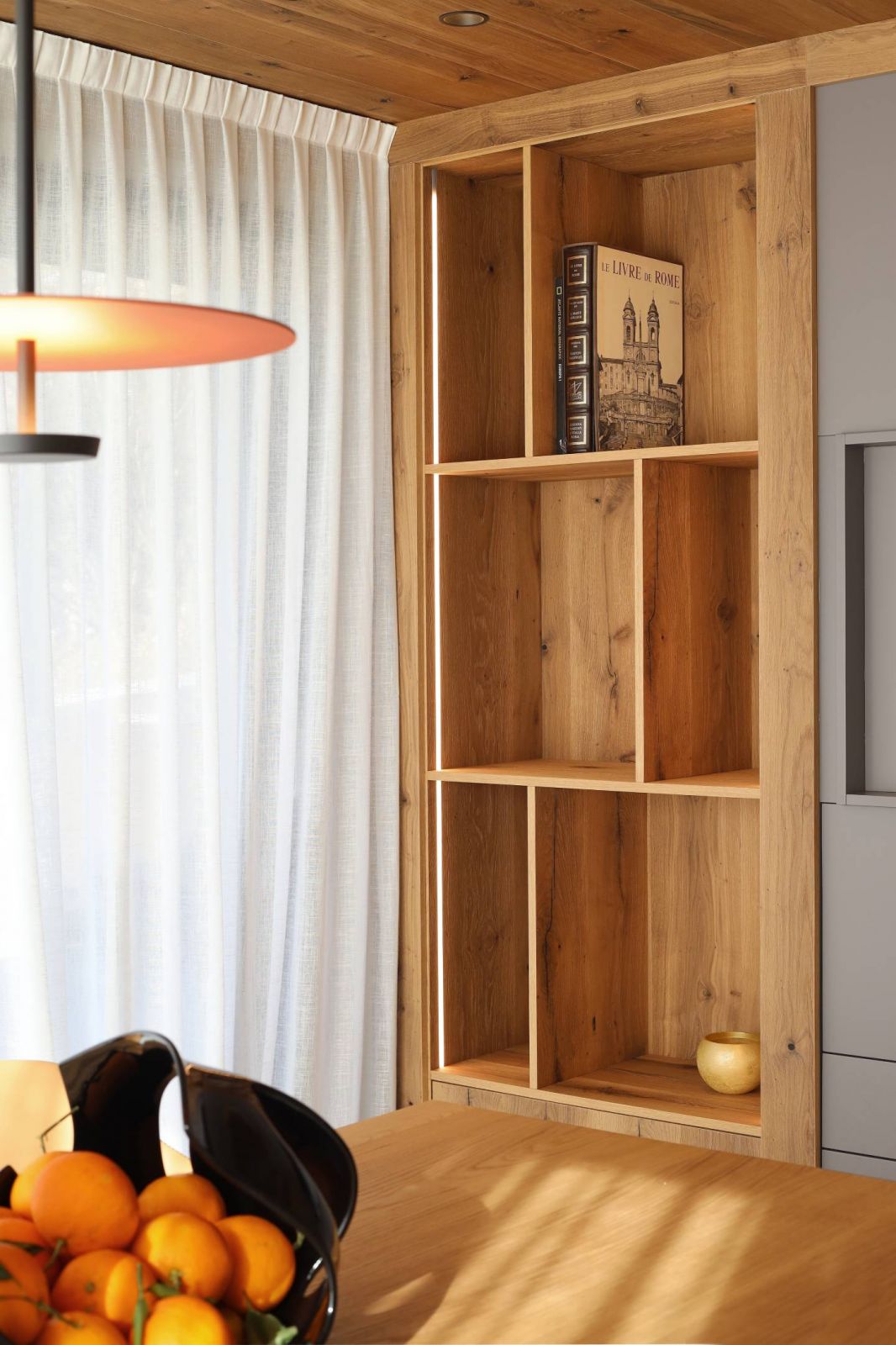 Abbiamo curato la progettazione e la realizzazione su misura sia della zona giorno che della zona notte, studiando ogni dettaglio per unire armonia estetica e praticità d’uso. Ogni elemento, dai complementi d’arredo all’illuminazione, è stato progettato ad hoc per la famiglia, con l’obiettivo di creare un equilibrio naturale tra eleganza, funzionalità e benessere quotidiano.