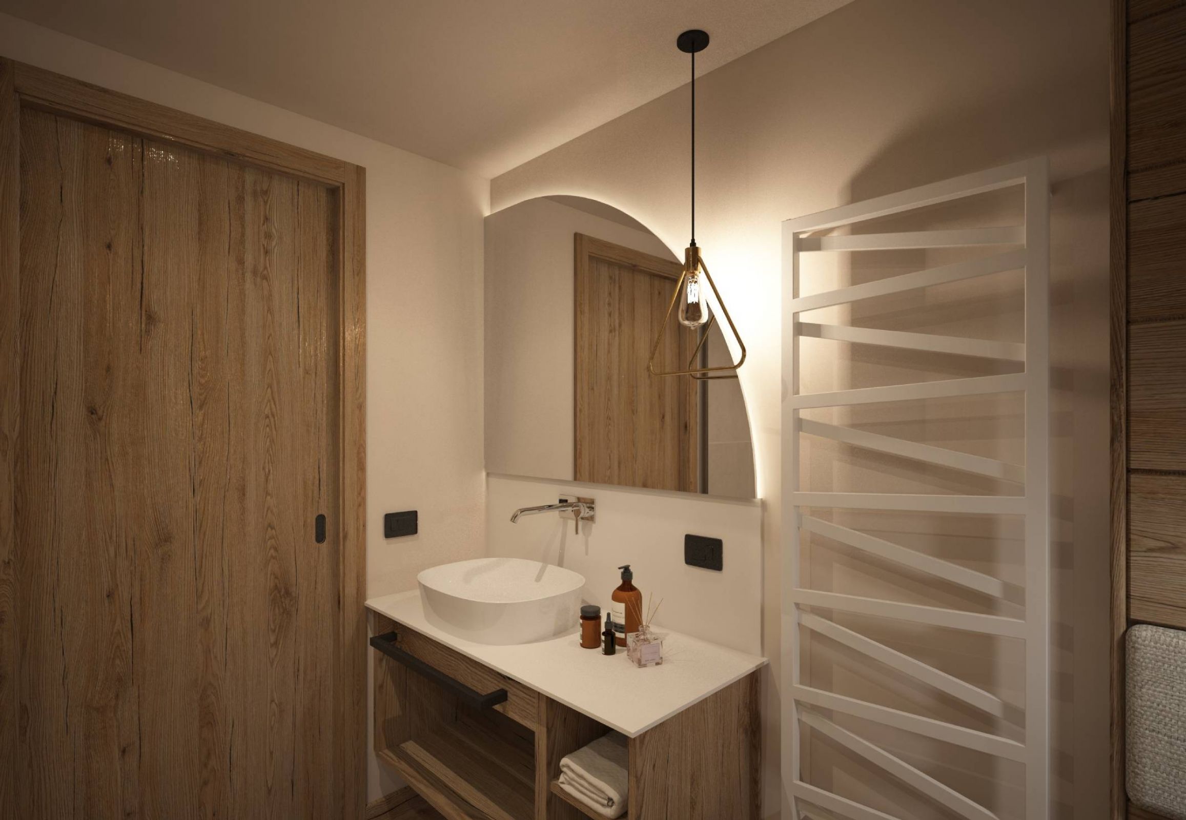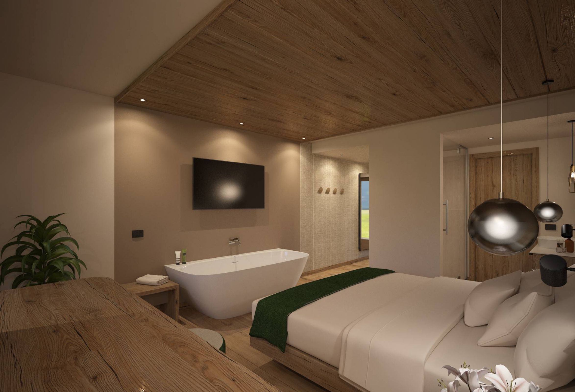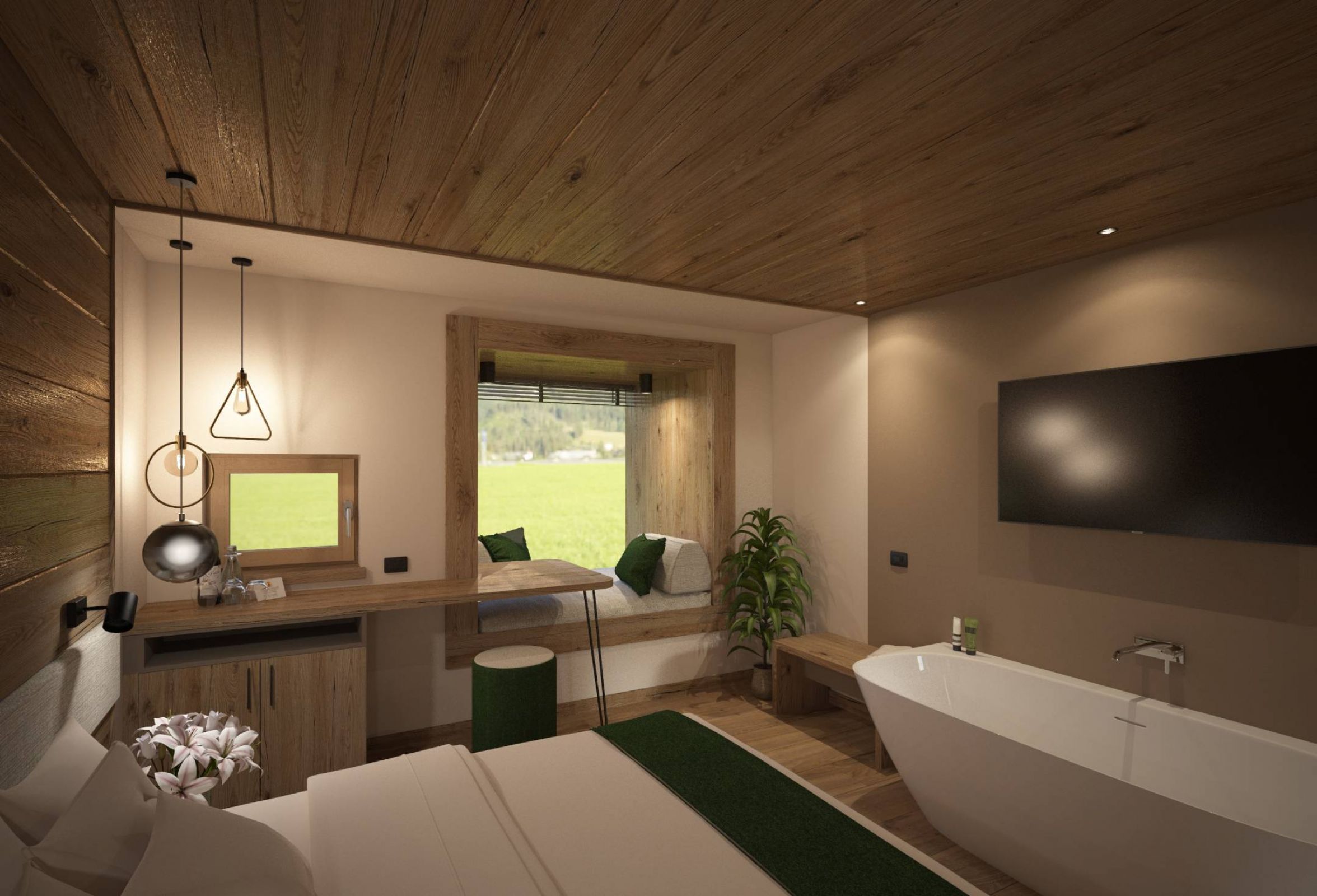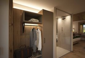 L’obiettivo del progetto per le nuove Junior Suite era quello di mantenere questa filosofia anche negli interni, creando ambienti che trasmettessero equilibrio, semplicità e benessere naturale. Un collegamento autentico tra dentro e fuori.